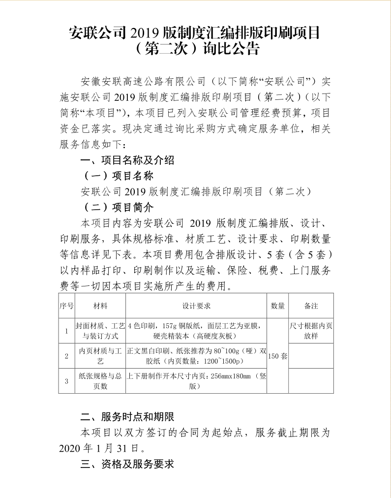 安聯(lián)公司2019版制度匯編排版印刷項目(第二次)詢(xún)比公告